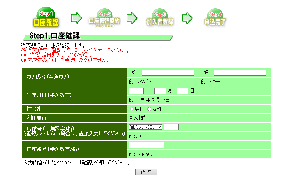 口座確認→口座振替契約→加入者登録