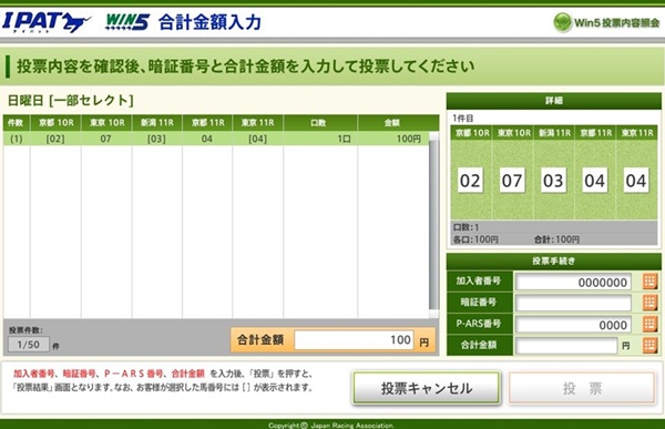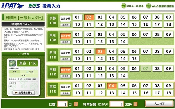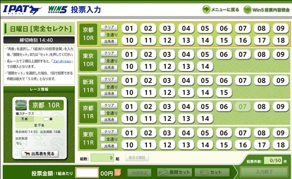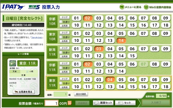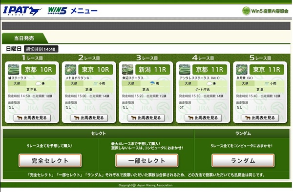 →WIN5の最初のレースの発走予定時刻の15分前