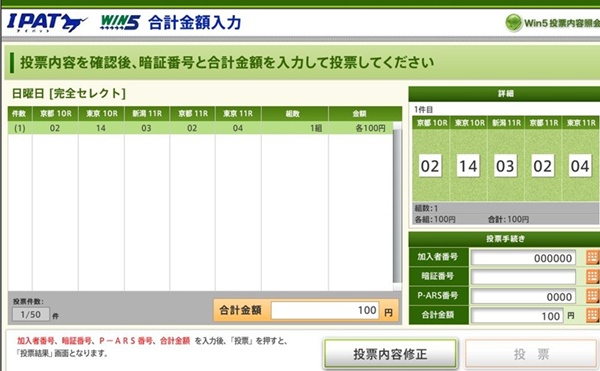 暗証番号と金額を入れ投票します。