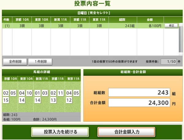ちなみに5レースそれぞれ1位2位3位人気で3頭ずつを選ぶと…「243組」になりました。
